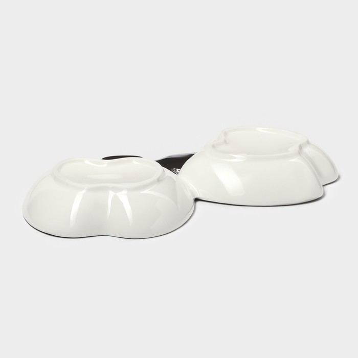 Керамическая менажница с двумя ячейками — аккуратный и функциональный элемент кухонного стола. Её можно использовать для подачи масла и джема, сыра и фруктов, закусок или десертов. Фигурная форма в виде яблок добавляет изделию индивидуальности, а белый цвет делает его универсальным аксессуаром в любом интерьере.