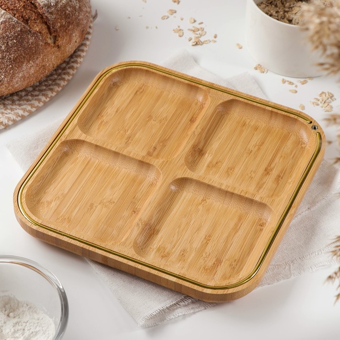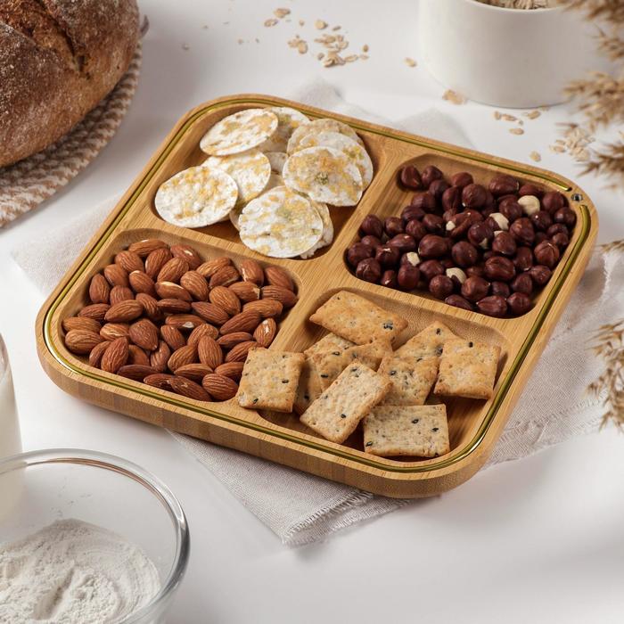 Менажница Доляна «Цветение», 4 секции, 24,5?24,5 см, бамбук
