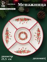 Менажница Доляна «Новогоднее настроение», 5 секций, 25.5?3.1 см, доломит, белая