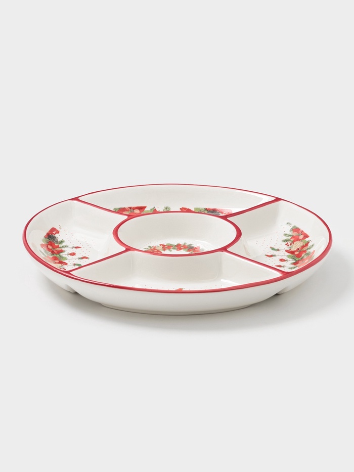 Создайте праздничную атмосферу с нашей белоснежной менажницей «Новогодний стиль». Этот элегантный керамический аксессуар с пятью секциями станет изысканным дополнением вашего праздничного стола. Идеально подходит для сервировки закусок и десертов, добавляя нотку изящества любому застолью.