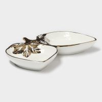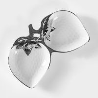 Керамическая менажница с двумя ячейками — практичный и стильный аксессуар для сервировки закусок, десертов, сыра, масла или фруктов. Её фигурная форма вдохновлена ягодой клубники, что добавляет изделию лёгкости и настроения. Белый цвет делает его универсальным элементом любого стола.