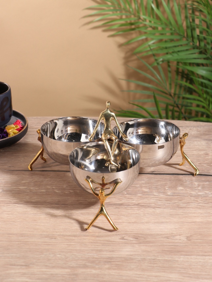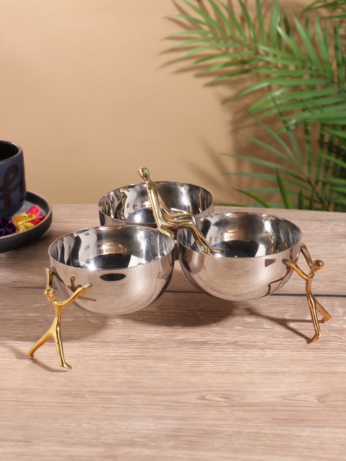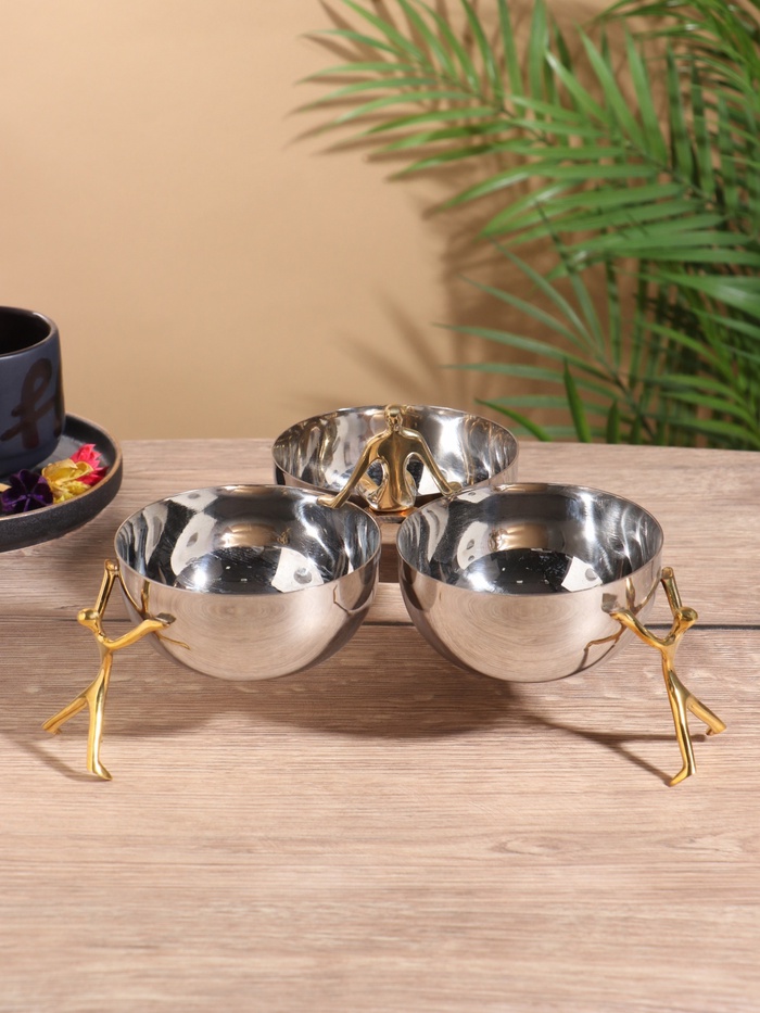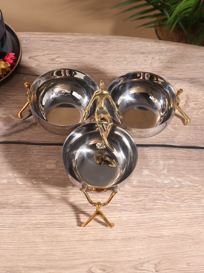 Менажница «Единство», 3 чаши, 27?27?14 см, нержавеющая сталь, латунь