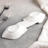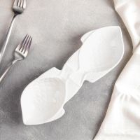 Керамическая менажница с двумя ячейками — практичная посуда для подачи масла, специй, соусов или закусок. Длина 27 см и фигурная форма создают ощущение лёгкости, будто блюдо само собой разделилось на части. Белый цвет и рельефная текстура добавляют объём без рисунка — минимализм, который работает на любой сервировке.