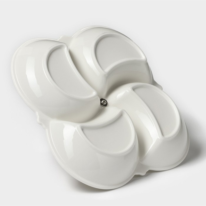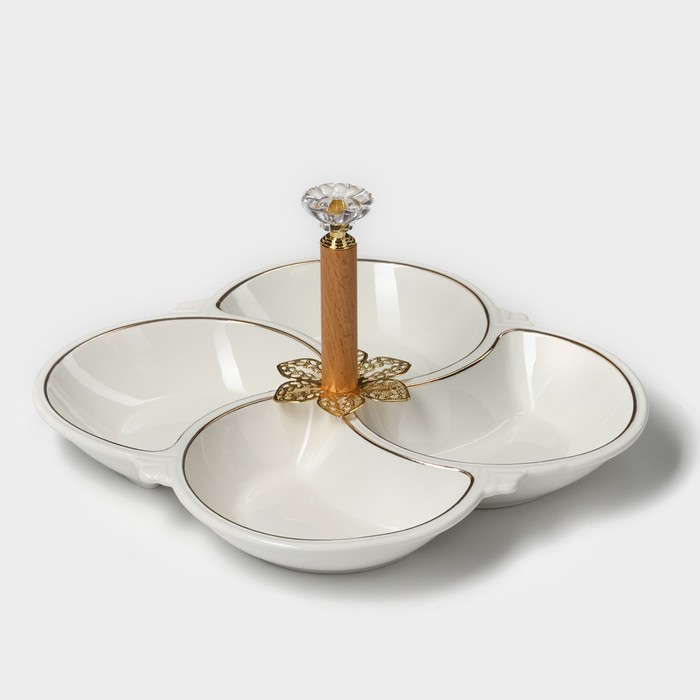 Менажница «Богема» впишется в интерьер любой кухни и позволит интересно сервировать стол. Изделие имеет четыре ячейки, в которые можно положить нарезку сыра, фрукты, мясные деликатесы, орехи, конфеты и другие закуски.