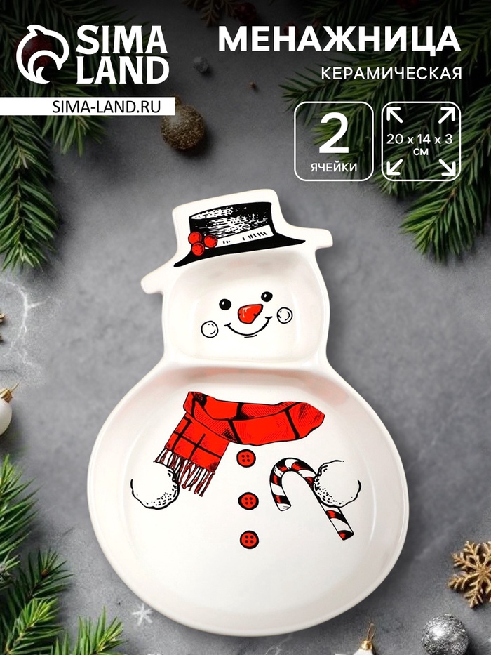 Менажница керамическая новогодняя Дорого внимание «Снеговик!», 14 х 20 х 3 см
