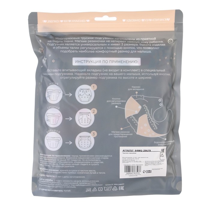 • Размер подгузника универсальный, подходит для детей от 3 до 15 кг, от рождения до 3 лет;