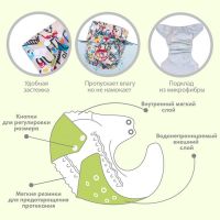 Многоразовый подгузник «Гномики», 3-15 кг, Крошка Я