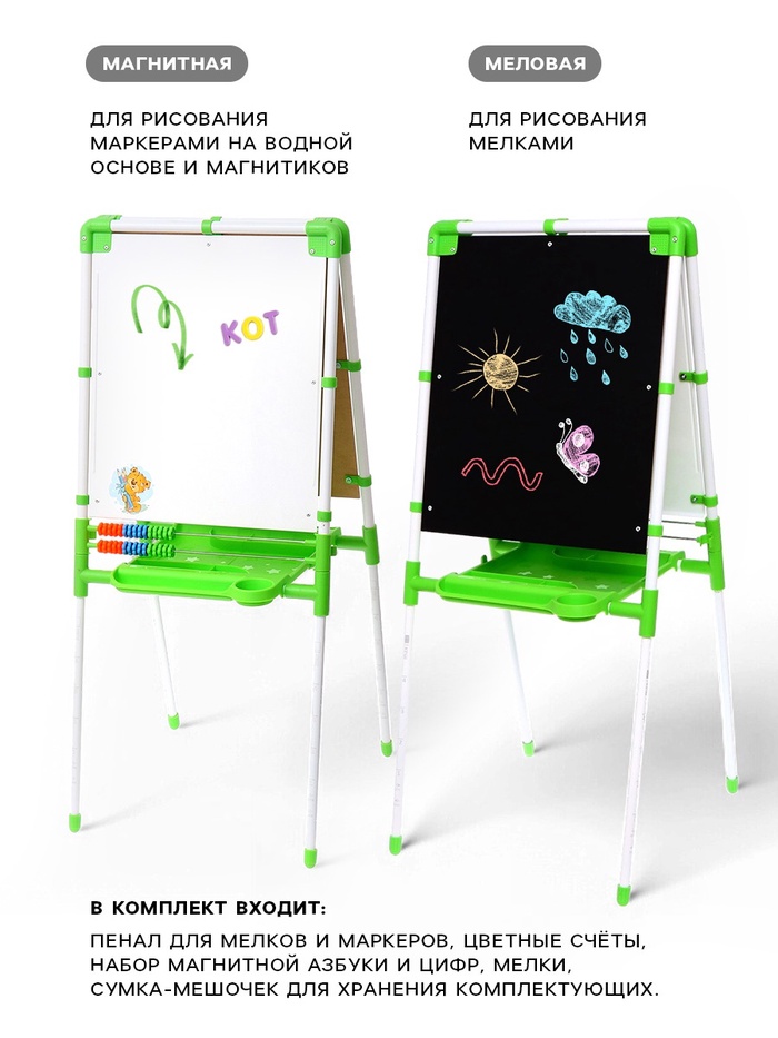 Мольберт «Доска знаний» — идеальный выбор для родителей, которые хотят создать для ребёнка удобную и вдохновляющую среду для обучения и творчества. Подходит детям любого возраста и станет отличным подарком!