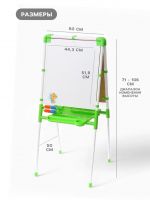 - Регулируемая высота: от 710 до 1060 мм, что позволяет настроить мольберт под рост ребёнка.