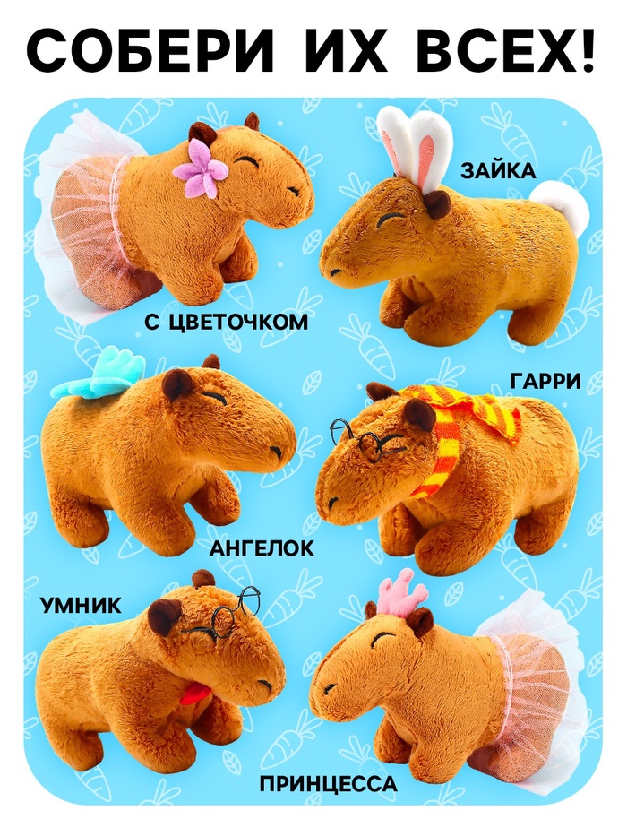 Мягкая капибара с заячьими ушками и хвостиком станет милым другом для вашего ребёнка. Благодаря своему внешнему виду капибара приобрела популярность среди детей и взрослых. Этот зверёк — самый крупный грызун в современном мире.
