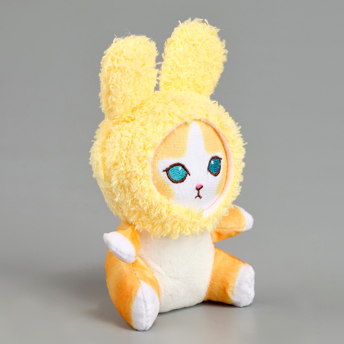 Мягкий котик в костюме зайки на брелоке — это стильный и трогательный аксессуар, который добавляет тепла и радости в вашу повседневность. Его яркие цвета и милый образ создают атмосферу уюта и вдохновения.