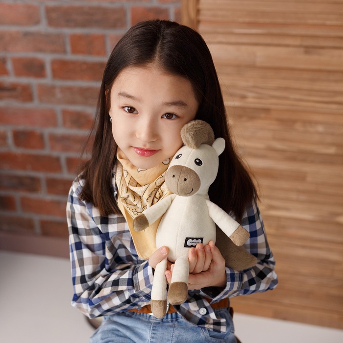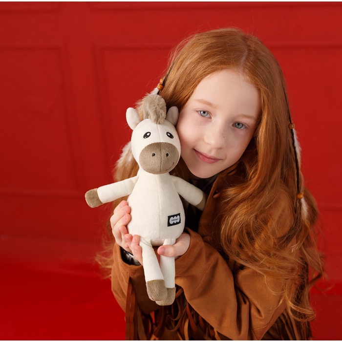 • Игрушка выполнена в виде милой лошадки с мягкой текстурой искусственного меха.