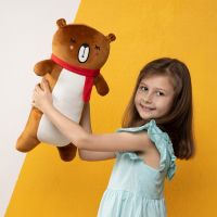 - Игрушка выполнена в виде большого медведя с мягкой и приятной текстурой.