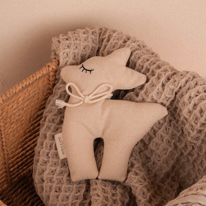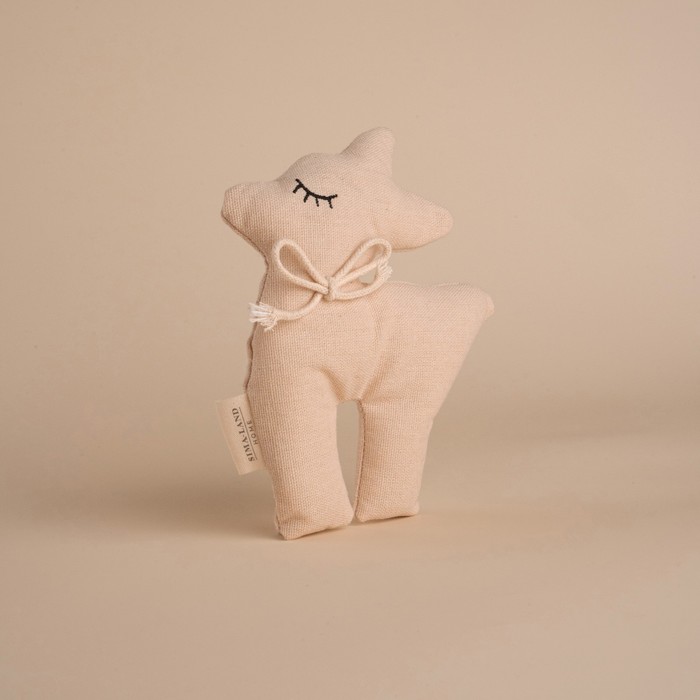 Мягкий «Оленёнок» — это очаровательный аксессуар, который станет любимым другом для вашего ребёнка или стильным элементом декора. Его компактный размер и нежный дизайн делают его идеальным выбором для игр, подарков или украшения. Бантик добавляет игривости, а материал из льна обеспечивает натуральность и долговечность.