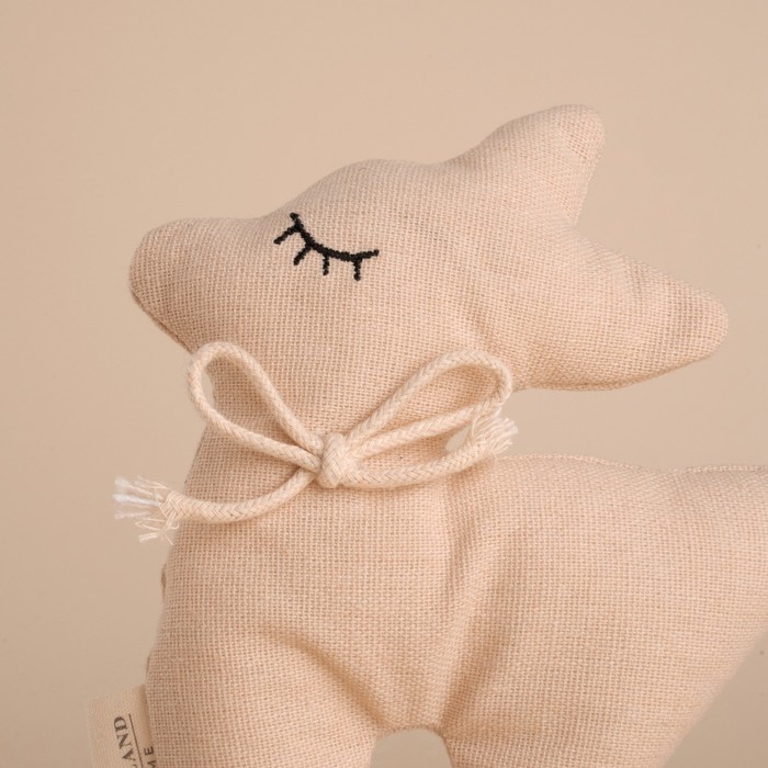 - Игрушка выполнена в виде милого бежевого оленя с элегантным бантиком.