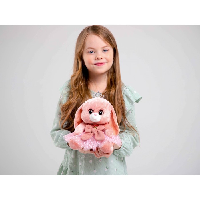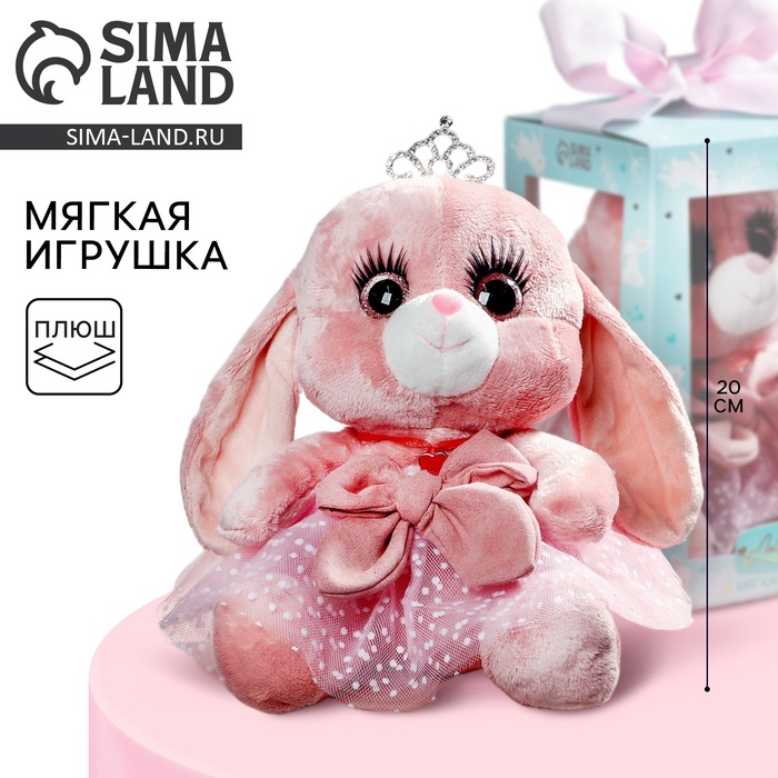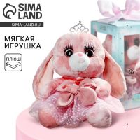 Мягкая игрушка «Зайка Ла-Пу-Ля в платье с короной», цвет розовый, 20 см