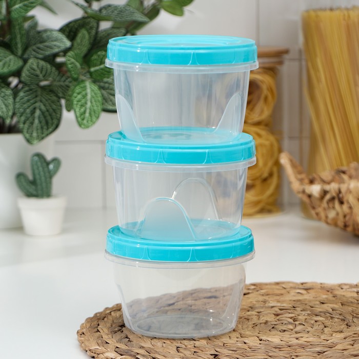 Набор банок для хранения продуктов с крышкой «Фиджи», 3 шт, 0,7 л, цвет крышки МИКС