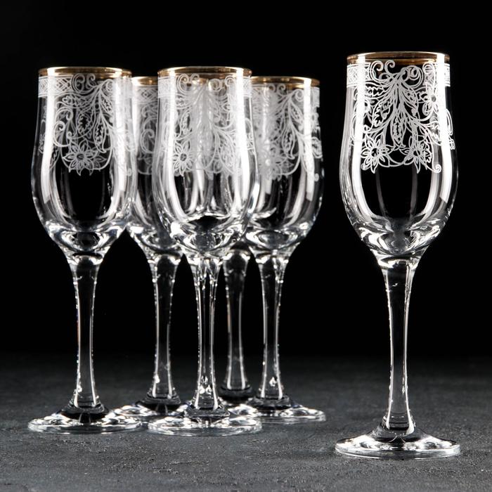 Набор бокалов для шампанского «Акация», стеклянный, 6 шт, 200 мл, гравировка, отводка золотом