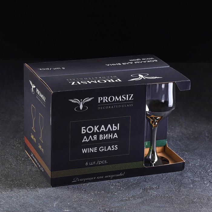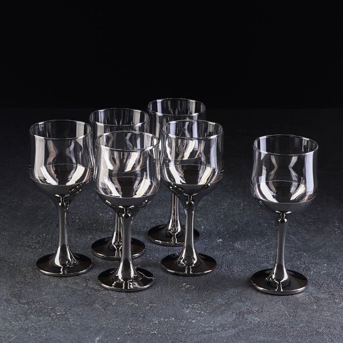 Набор бокалов для вина «Поло», 250 мл, 6 шт, цвет серебряный