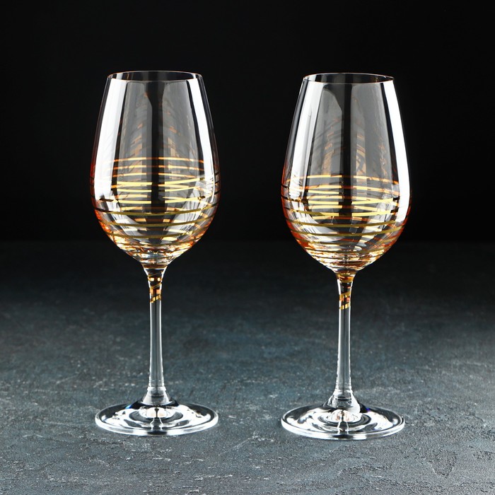 Набор бокалов для вина из хрустального стекла «Золотая спираль», 350 мл, 2 шт