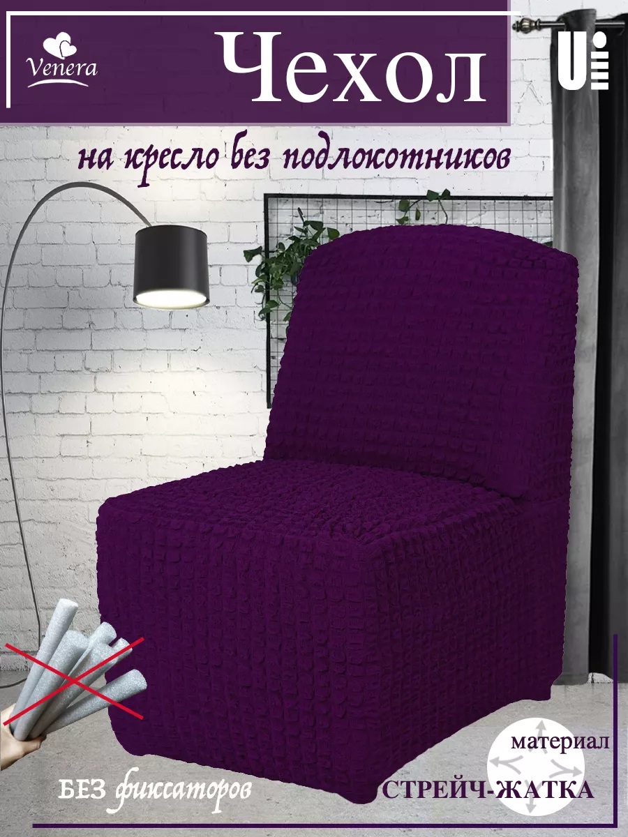 Чехол на кресло без оборки и подлокотников 1 шт.,фиолетовый