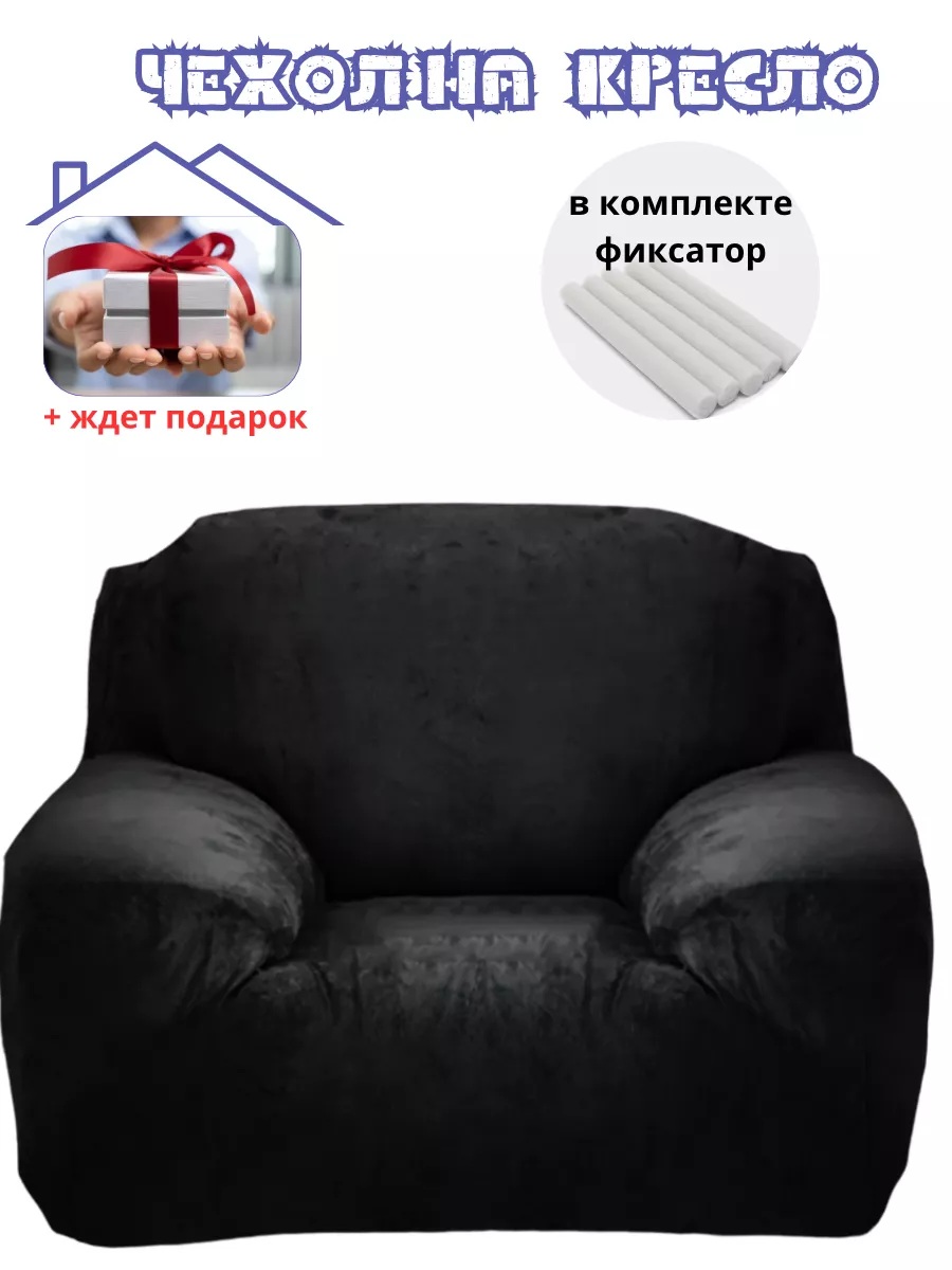 Чехол на кресло без оборки 1 шт. Бархатный велюр(мех), черный