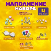 Набор для создания украшений «Мишка», 4 вида бусин, 20 соединительных колец, 10 карабинов, резинка