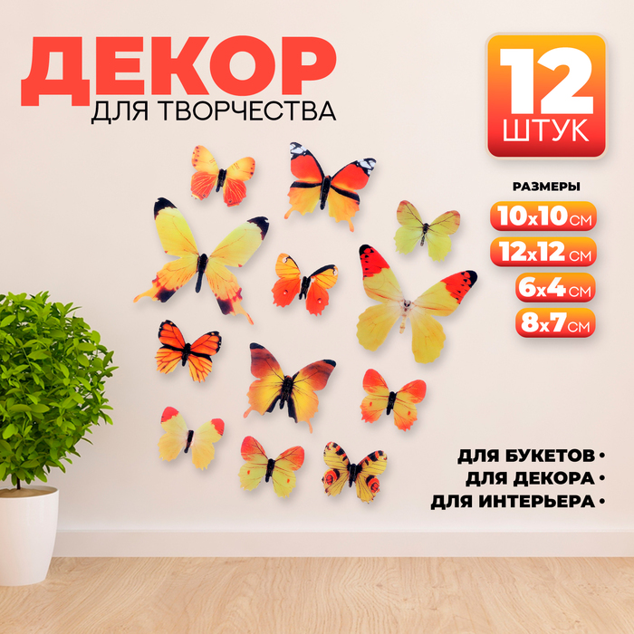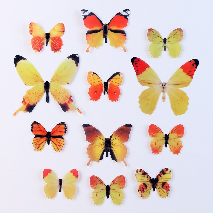 Набор для украшения «Бабочки», 12 шт, цвет жёлтый