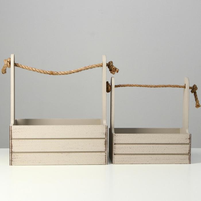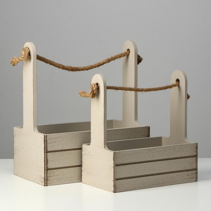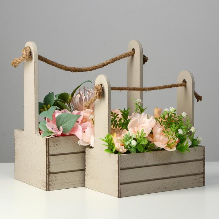 Набор кашпо деревянных 2 в 1 (25.5?15?30; 20?12?23) "Прованс", светло-серый