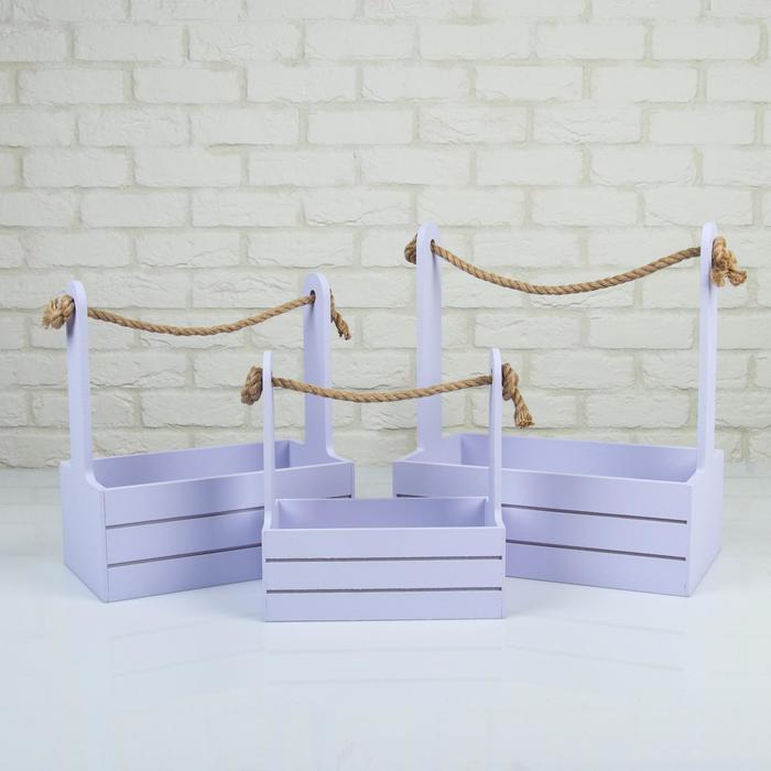 Набор кашпо деревянных 3 в 1 (29?18?33; 25?15?30; 21?12?23) "Аром", лаванда