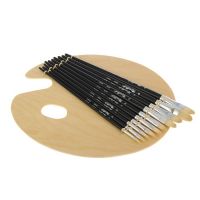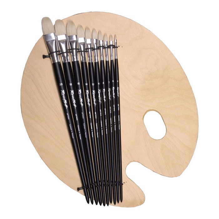 Набор кистей Щетина 10 штук Roubloff НАБОР № 41: овальные на деревянной палитре №: 4, 6, 7, 8, 9, 10, 14, 15, 18, 20