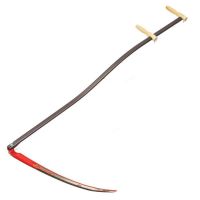 - Косовище из металлической профилированной трубы с двумя деревянными рукоятками. Оно эргономично изогнуто, на конце есть отверстие под монтажный болт для надёжной фиксации полотна.