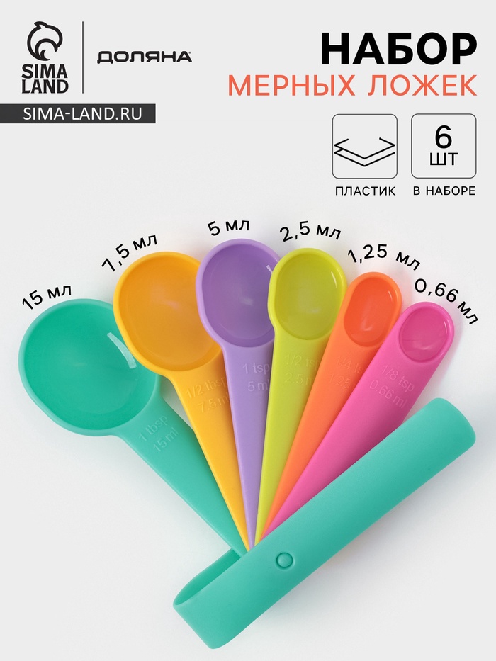 Набор мерных ложек Доляна « Колор», 6 шт., пластик, разноцветный
