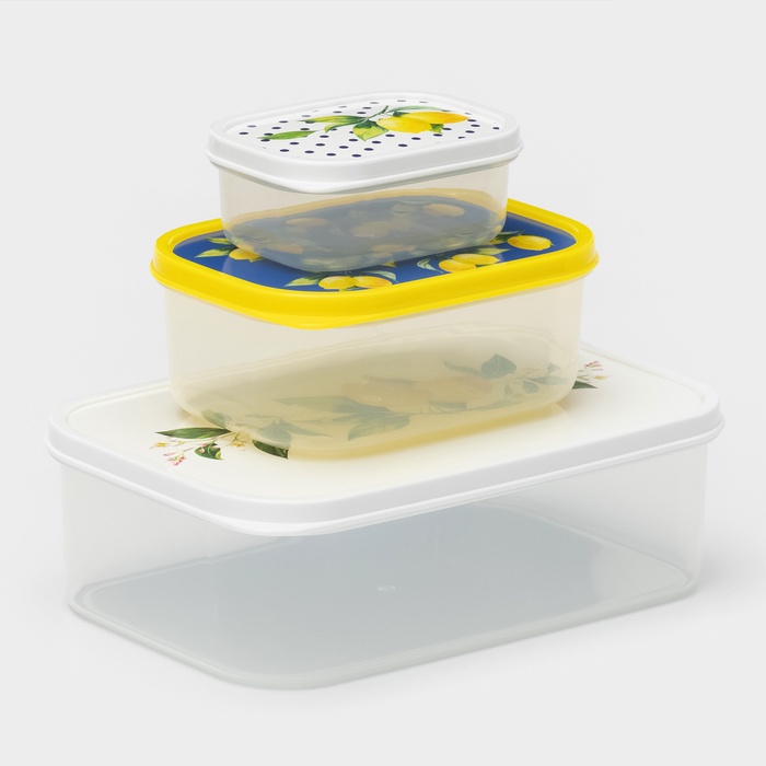 Набор|Да;Цвет|Прозрачный;Объём, л|0.15;Объём, л|0.5;Объём, л|1.2;В наборе, шт.|3;Объём, мл|150;Объём, мл|500;Объём, мл|1200;Рисунок|Да;Материал|Пластик;Герметичная крышка|Нет;Наличие столовых приборов|Нет;Можно мыть в посудомоечной машине|Да;Можно использовать в СВЧ-печи|Да;Цвет крышки|Разноцветный;