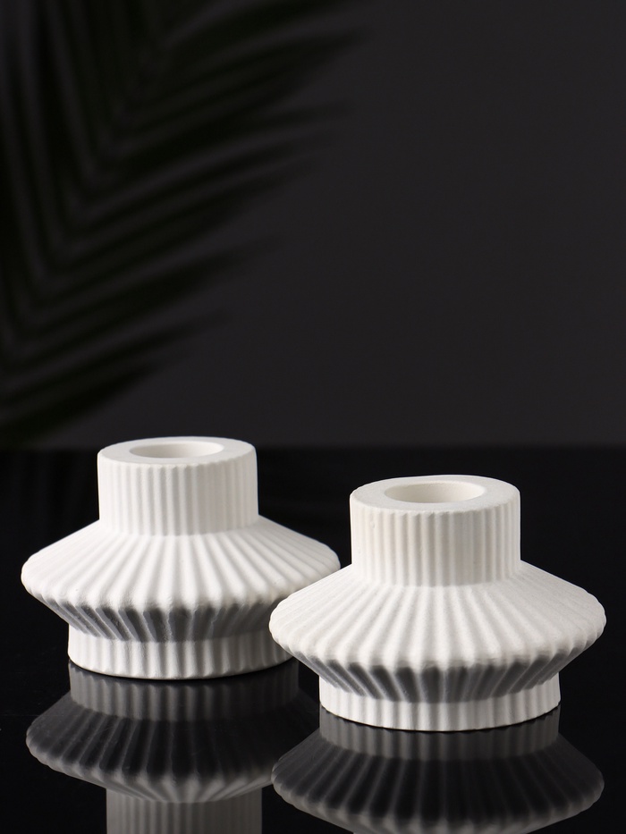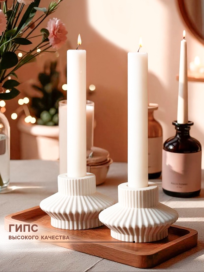 Этот набор - не просто функциональный аксессуар, а элемент декора, который преобразит ваше пространство. Мягкий свет свечей, отражаясь от белой поверхности подсвечников, наполнит комнату теплом и создаст атмосферу для душевных бесед и приятного отдыха.