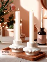 Изготовленные из качественного гипса, подсвечники обладают приятной матовой фактурой и устойчивой конструкцией. Компактные размеры (7?7?5 см) позволяют разместить их на праздничном столе, каминной полке или подоконнике, создавая теплую атмосферу в любом уголке дома.