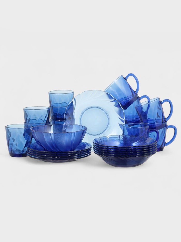 Набор столовый Sea Brim, 25 предметов: кружка 230 мл, салатник 900 мл, глубокая тарелка 600 мл, стекло, цвет синий