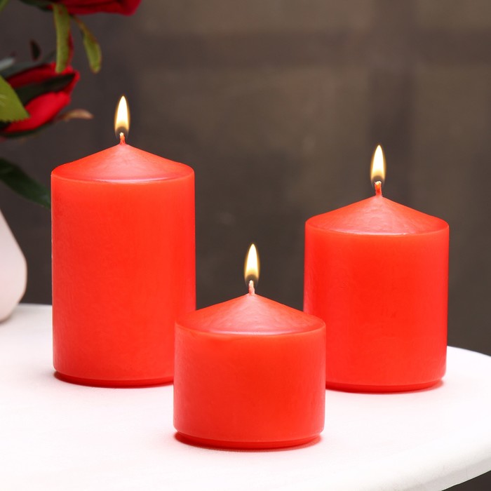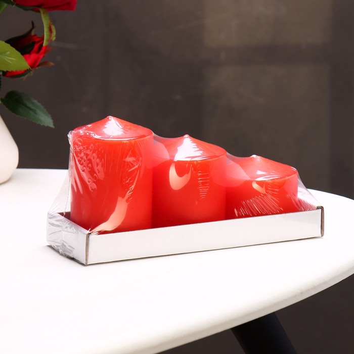 Набор свечей - цилиндров 3в1 (6х11 см, 6х8 см, 6х6,5 см), красный