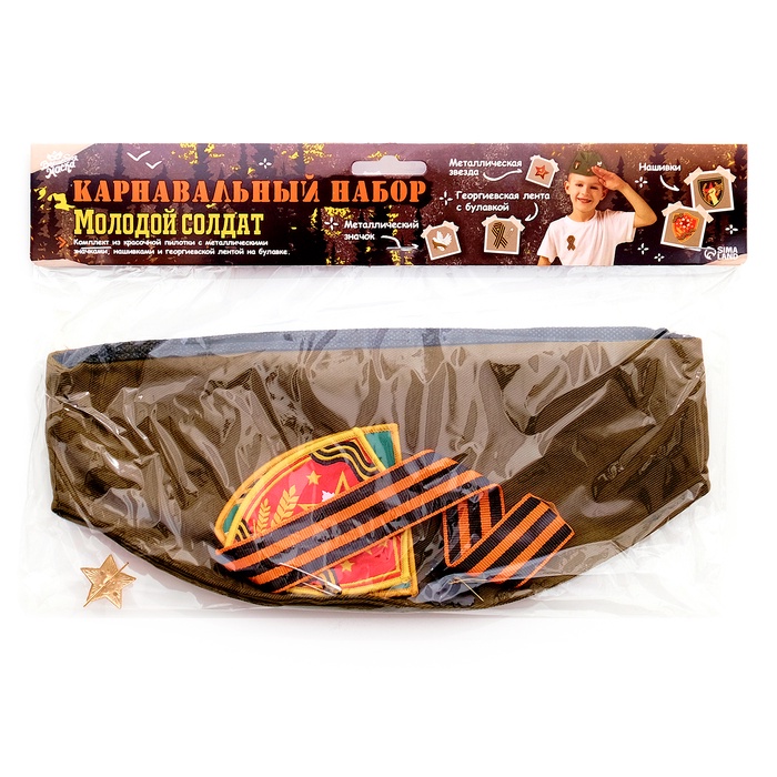 Набор военного на 9 мая «Молодой солдат»: пилотка, значок, георгиевская лента, нашивка, р-р 54-56
