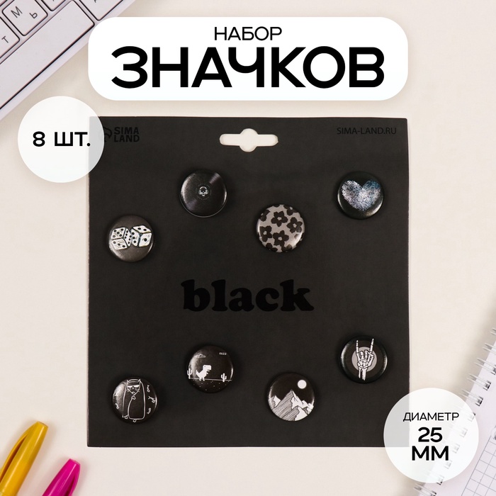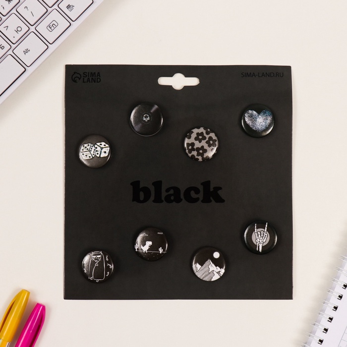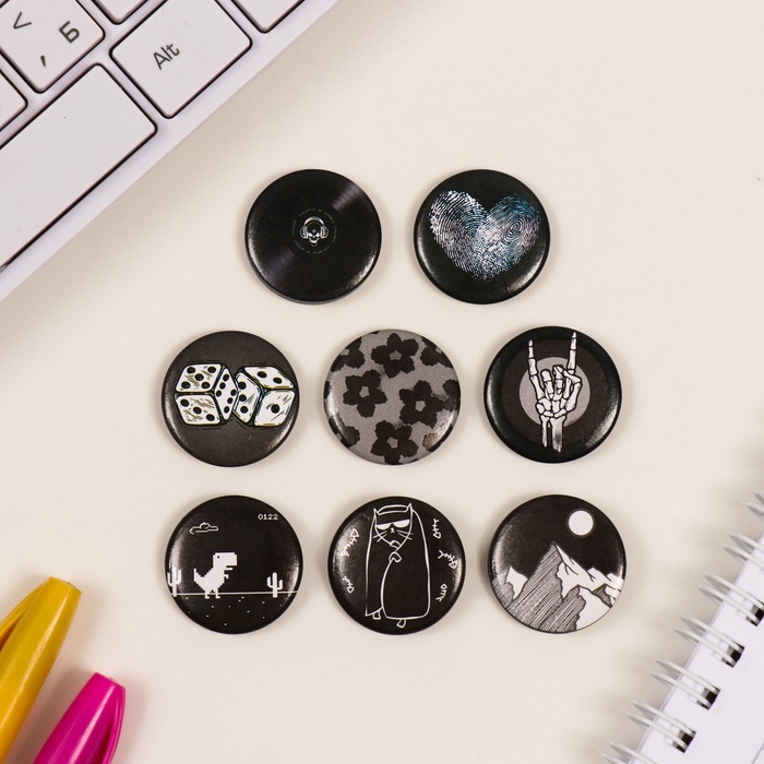 Набор значков на одежду, рюкзак, сумку «Чёрные», 8 шт., d=25 мм, закатные, 16.5?17 см