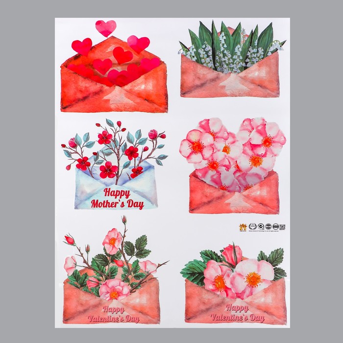 Наклейка пластик интерьерная цветная "Конверты с цветами и сердцами" 60х80 см