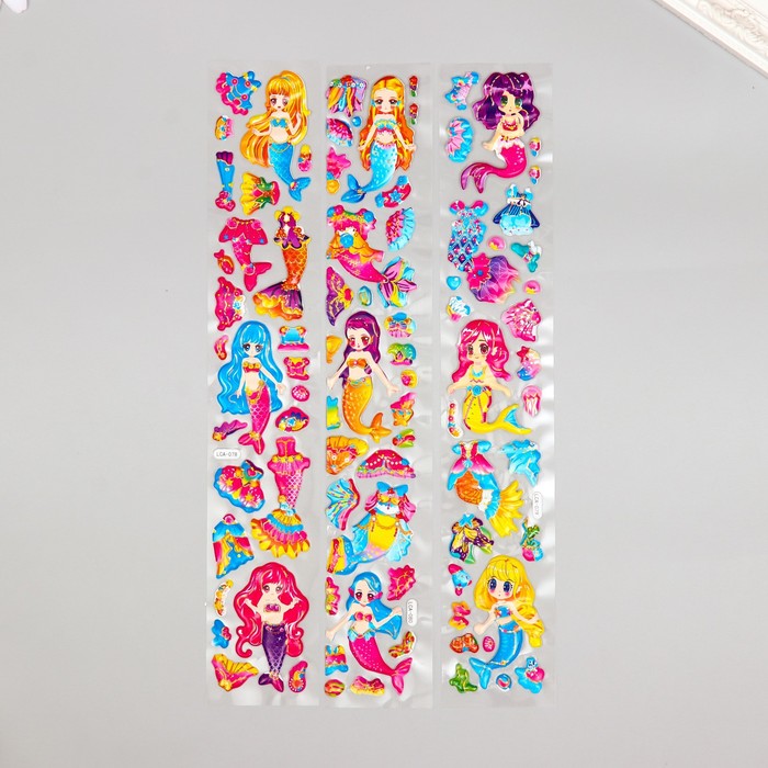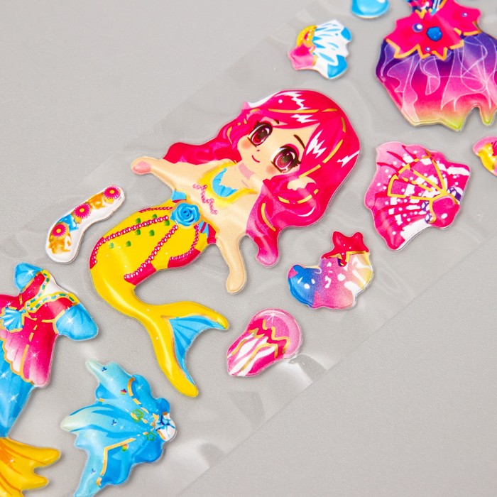 Наклейка пластик объёмные «Русалки и наряды», с золотой обводкой, 33.5?6 см, МИКС
