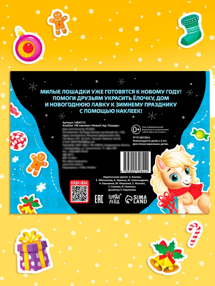 Новогодние наклейки «Лошадь» — это яркий набор из 100 стикеров, который добавит волшебства в подготовку к празднику. С их помощью ребёнок сможет украсить открытки, альбомы или поделки, создавая свои новогодние истории.