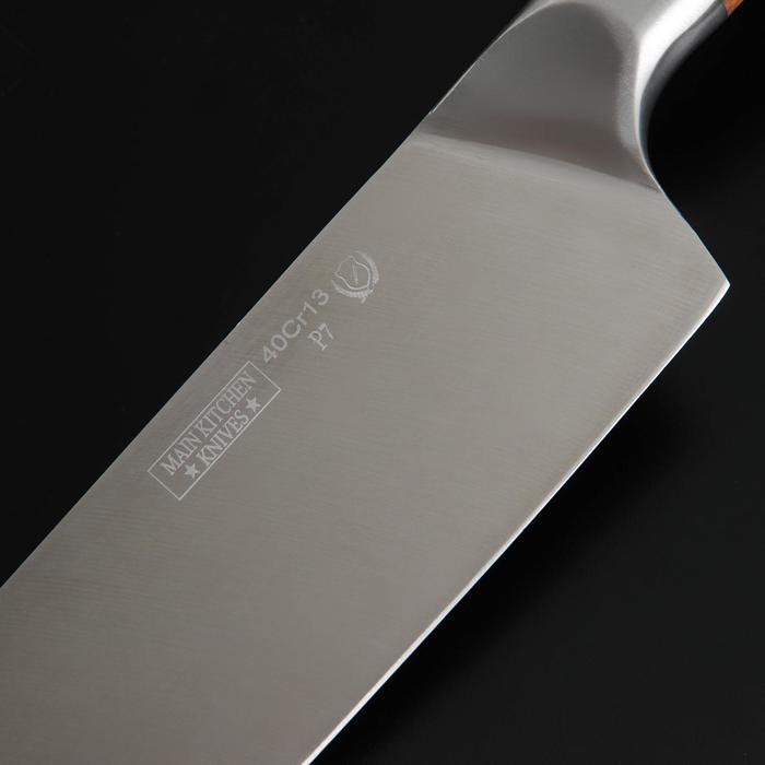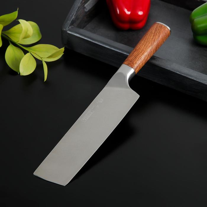 Набор|Нет;Цвет|Хромированный;Длина лезвия, см|20;Материал ручки|Дерево;Рисунок|Нет;Тип покрытия|Без покрытия;Материал лезвия|Нержавеющая сталь;Тип ножа|Кухонный топорик;