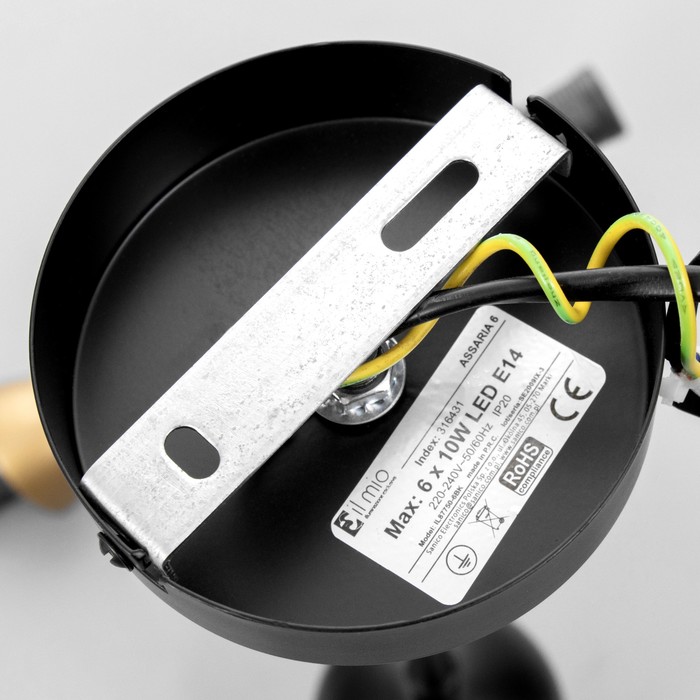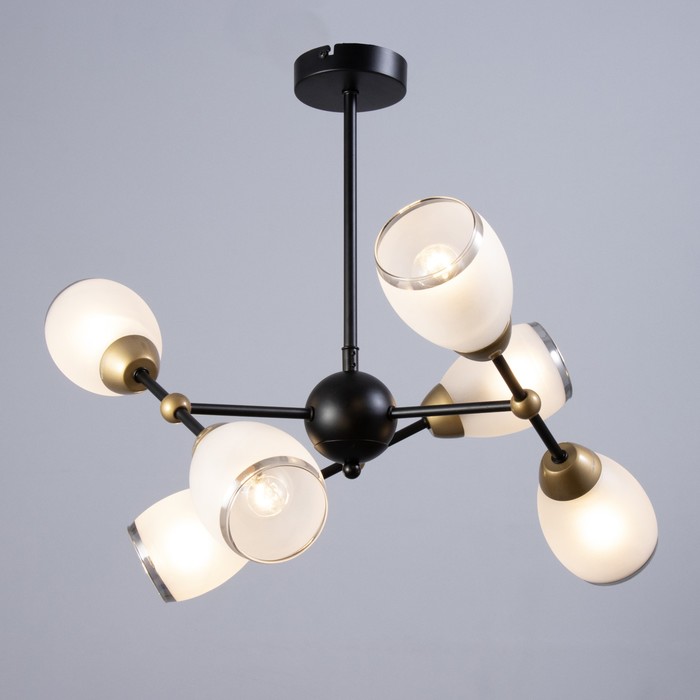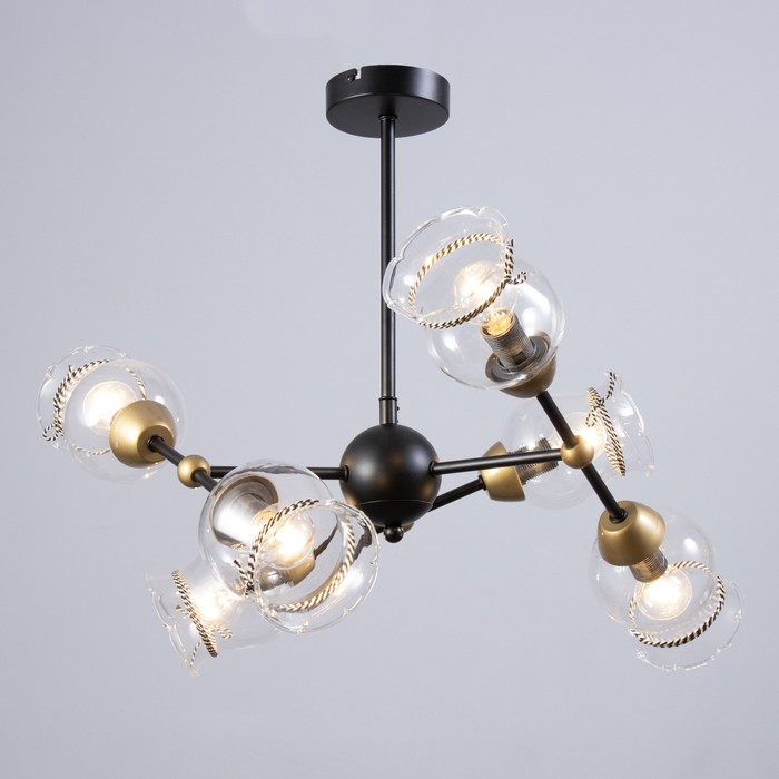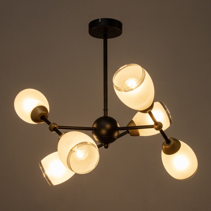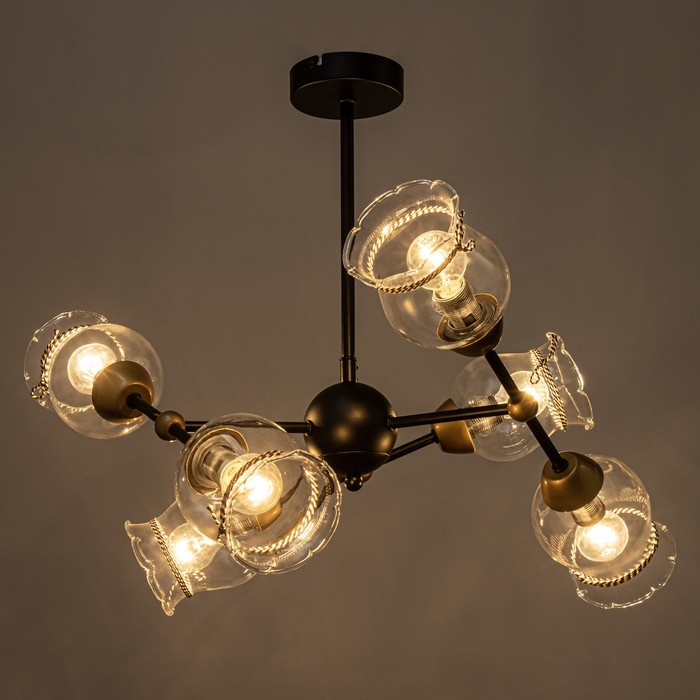 Вид лампы|Накаливания;Количество ламп|6;Стиль|Лофт;Цоколь|E14;Длина, см|46;Ширина, см|46;Высота, см|37;Площадь освещения, м²|18;Минимальная высота от потолка, см|37;Максимальная высота от потолка, см|37;Мощность на цоколь, Вт|60;Степень защиты|IP20;Назначение по помещениям|Спальня;Назначение по помещениям|Гостиная;Материал основания|Металл;Цвет основания|Чёрный;Тип подвеса|Штанга;Оттенок рассеивателя|Цветные;Управление светильником|Без выключателя;Подходит для натяжных потолков|Да (при использования светодиодных ламп);Плоская|Нет;Тип крепления|На планку;Направление рассеивателя|В стороны;Стиль|Лофт;Тип источника освещения|Лампа не в комплекте;
