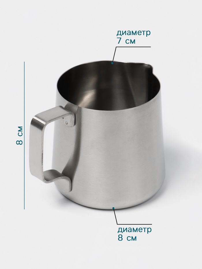 Надёжный помощник дял приготовления и подачи любимого кофе и напитков — питчер, который прекрасно впишется в любую кухню или столовую. Объем 300 мл позволяет с лёгкостью взбить молоко, а удобный носик оформить красивый и аккуратный рисунок, удивив гостей или посетителей.
