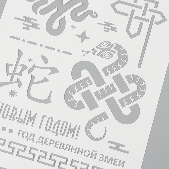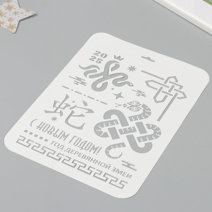 Пластиковый трафарет для творчества «С Новым годом 2025. Год деревянной змеи», шаблон, размер А4