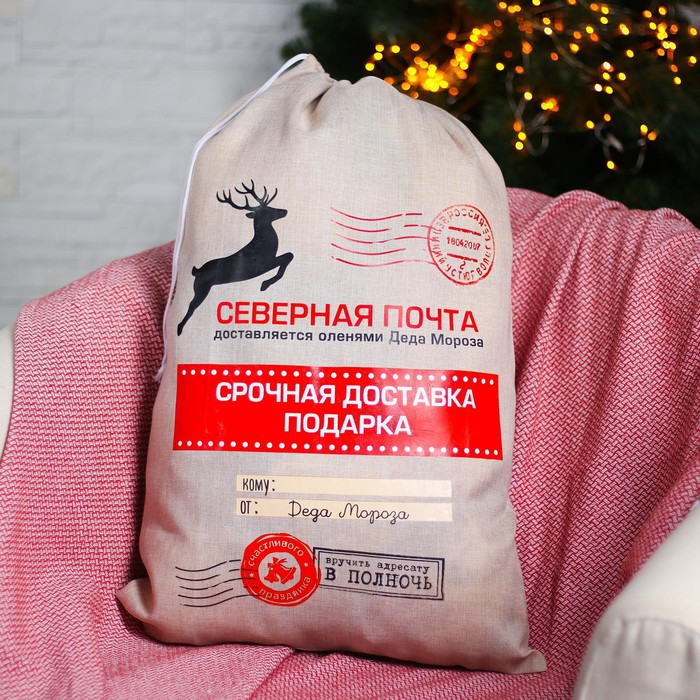 Подарочный мешок Деда Мороза «Северная почта» холщовый, 40?60 см