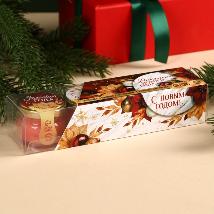 Подарочный набор: Крем - мёд «Роскошного года», вкус: мелисса, хлопок, малина, клубника, 120 г ( 4 шт. x 30 г).