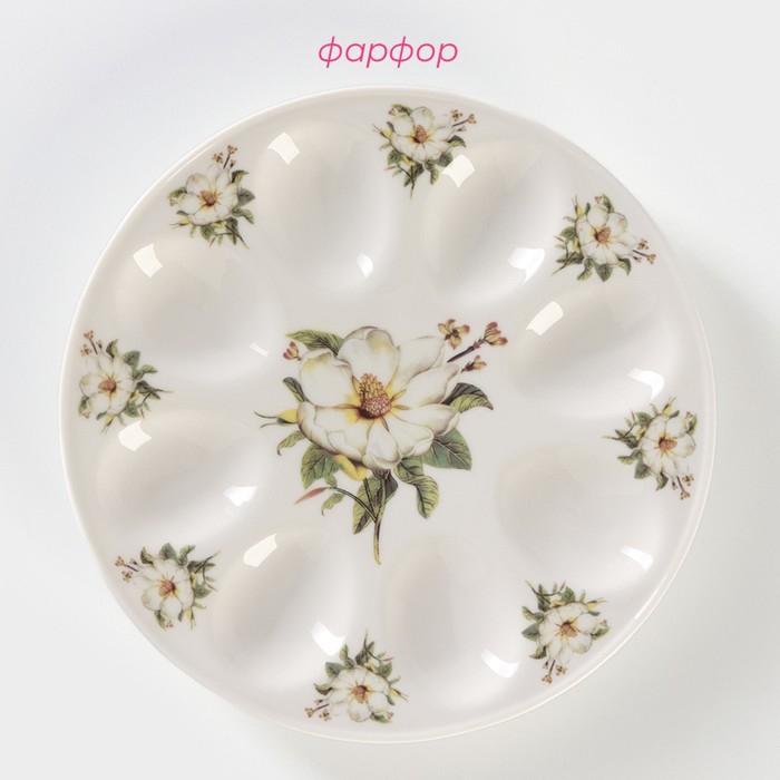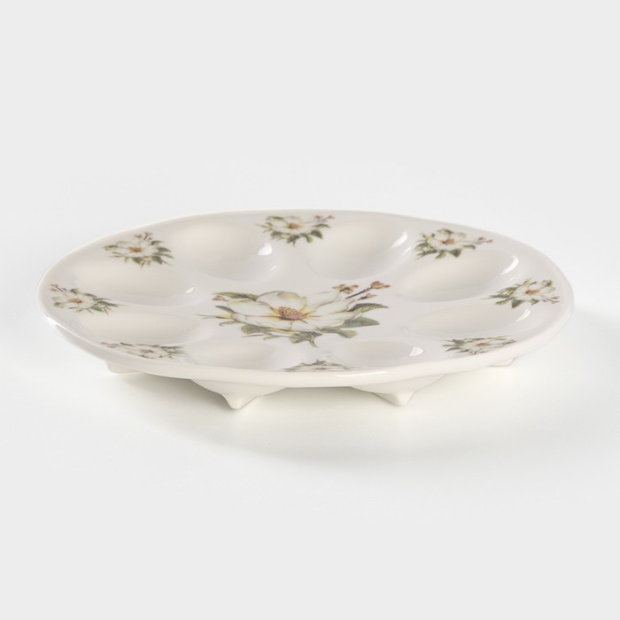Подставка для яиц Доляна «Цветы шиповника», d=20 см, фарфор, белая